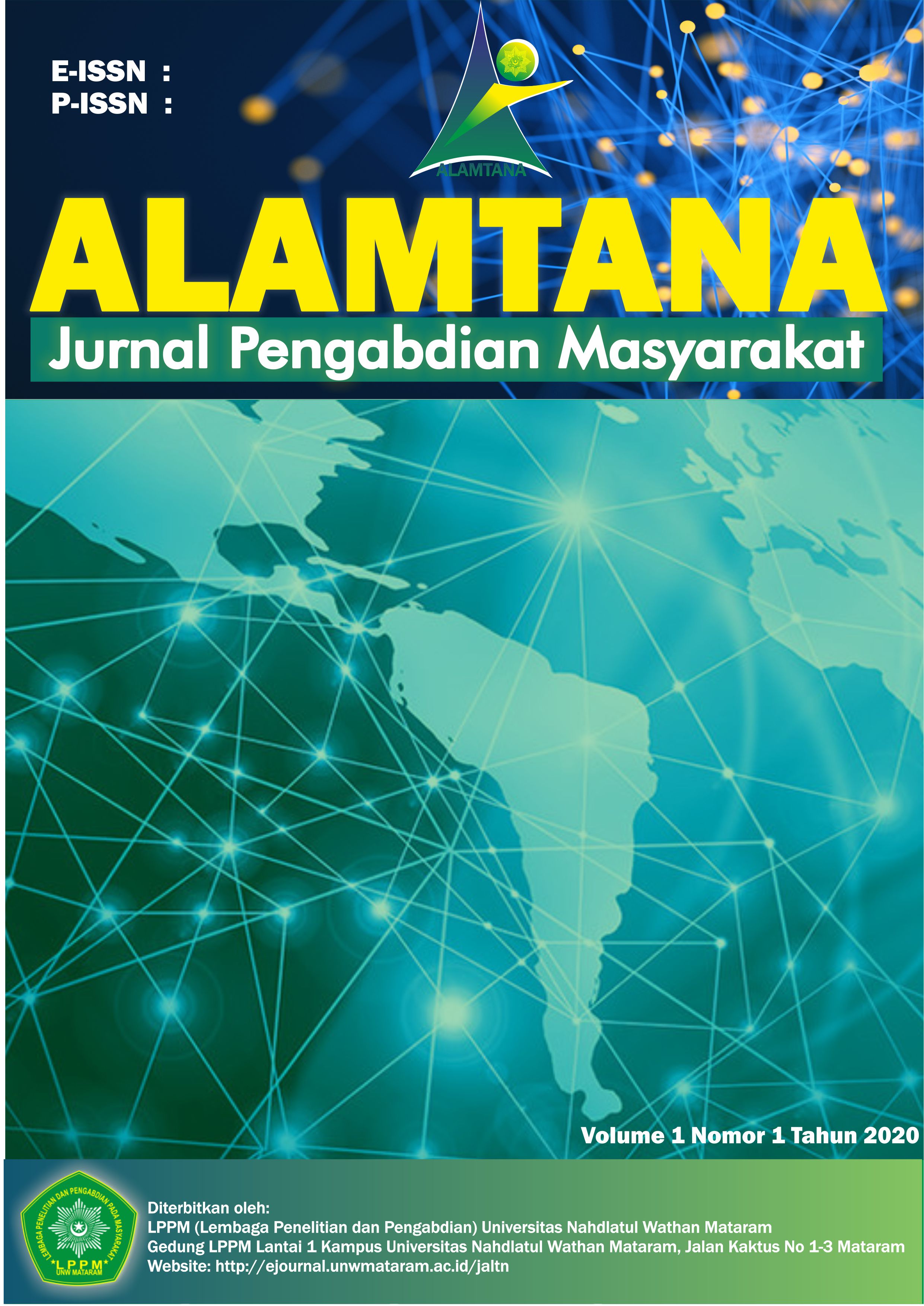 Jurnal ALAMTANA merupakan jurnal ilmiah yang diterbitkan oleh Lembaga Penelitian dan Pengabdian Masyarakat (LP2M) Universitas Nahdlatul Wathan Mataram dengan e-ISSN 2722-6751. Jurnal ALAMTANA pada volume 3 No 1 Tahun 2022 memuat artikel hasil pengabdian para dosen, akademisi, dan mahasiswa dalam membantu dan lembaga sumber daya, pertimbangan, tantangan, dan masalah yang ada di masyarakat. Implementasi kegiatan layanan juga melibatkan Partisipasi masyarakat dan mitra. Kegiatan pelayanan diorganisasikan menjadi kegiatan yang meningkatkan kesejahteraan masyarakat.
